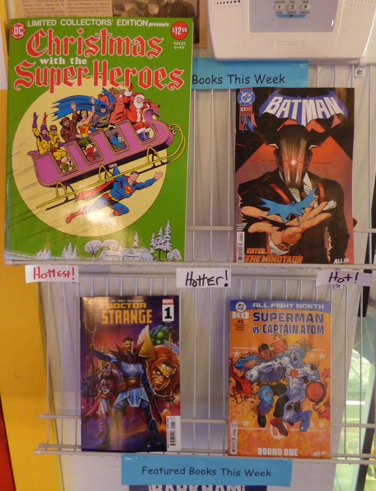 The Comic Book Shop is open from noon to 5 on Wednesday, Thursday, and Friday. On Saturday The Comic Book Shop is open from 10AM to 1 PM.